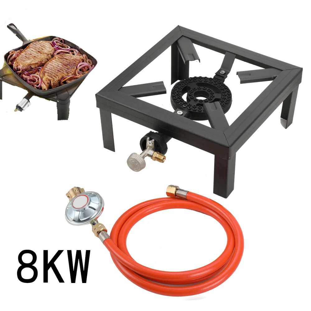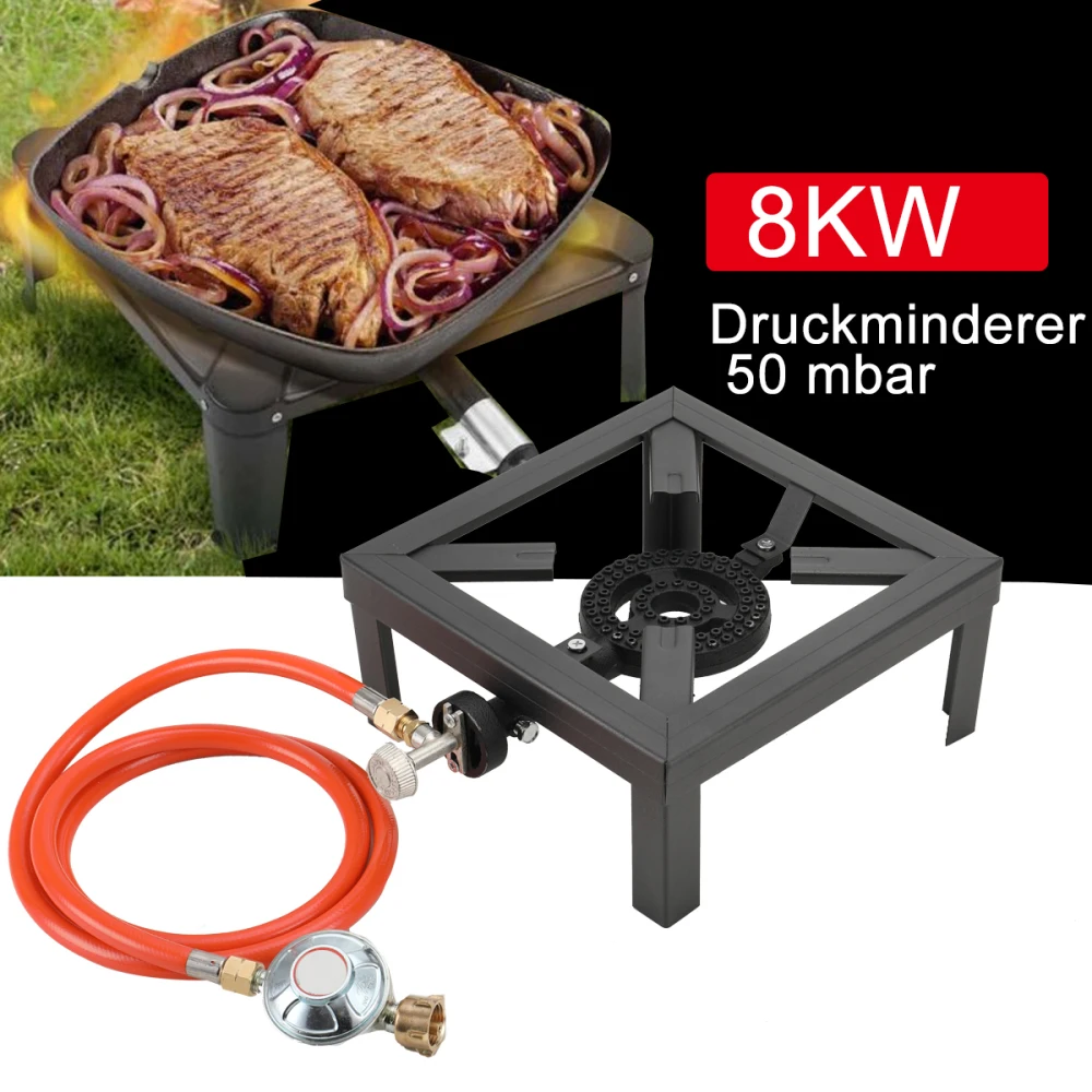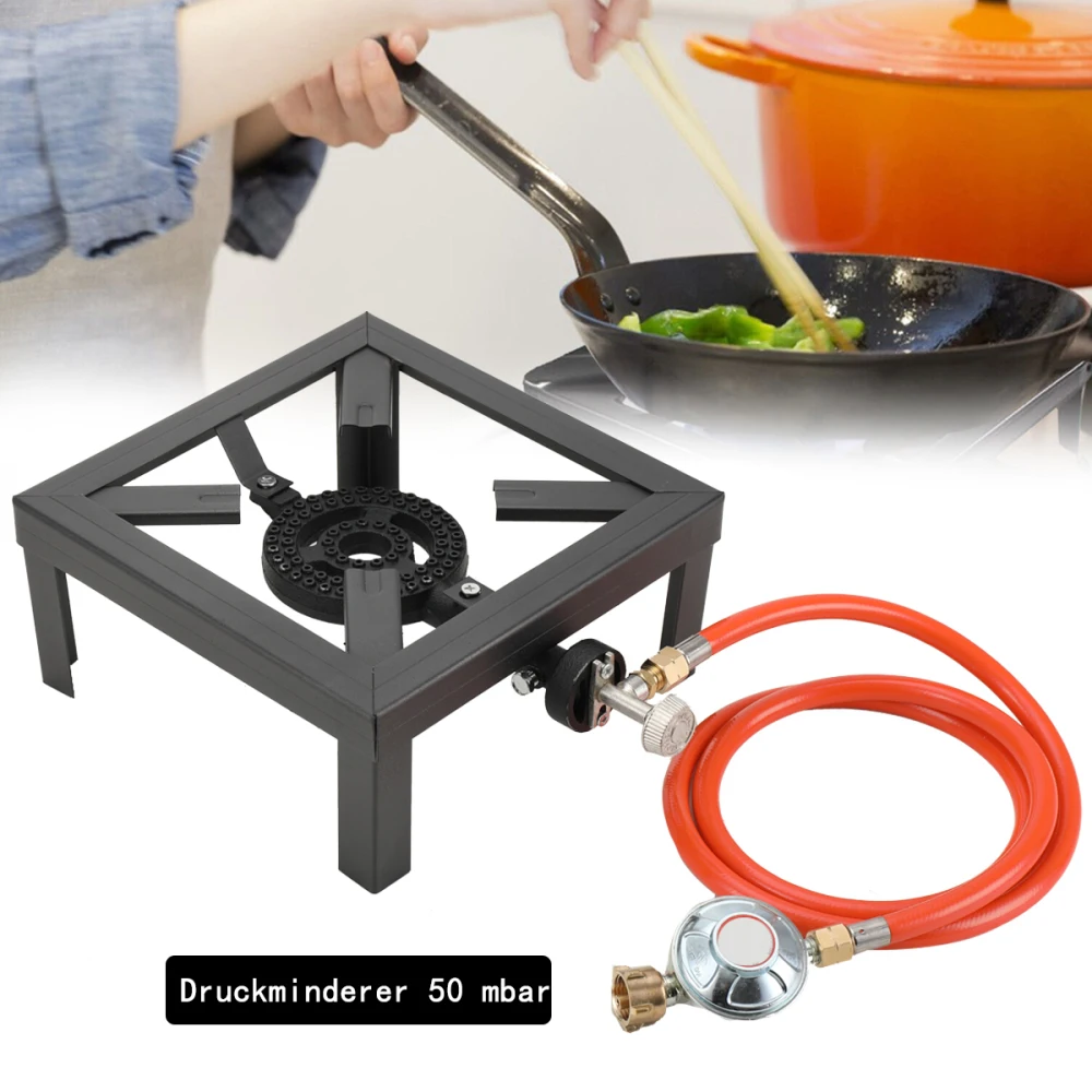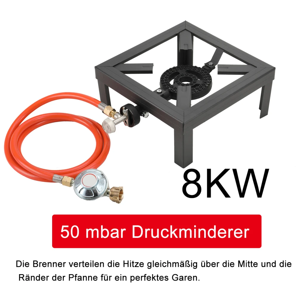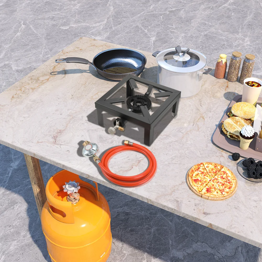 Cook anywhere with power and precision. This heavy-duty 8KW cast iron gas stove is built for outdoor cooking, camping, festivals, and catering. With its durable steel frame, adjustable fire control, and included gas regulator + hose, it delivers reliable performance for big meals. Compact yet powerful, it’s the perfect portable cooker for outdoor chefs.