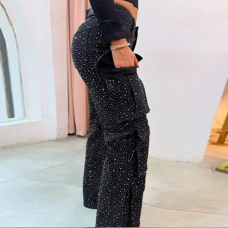 Design: Trendy high-rise fit with dazzling rhinestones for a standout Y2K-inspired look